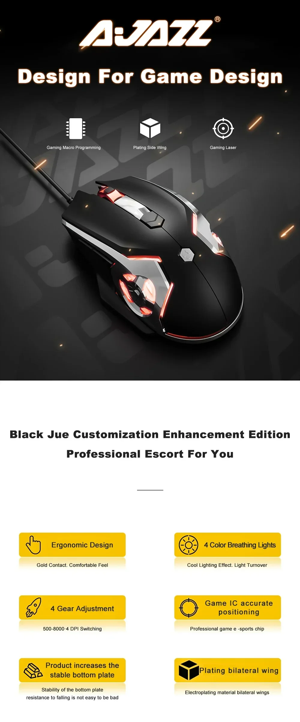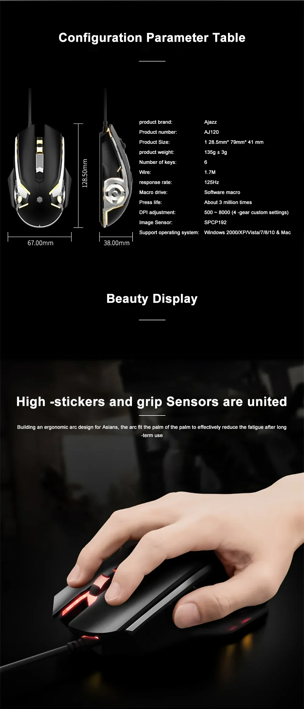 SPECIFICATIONS Brand Name: Ajazz Gross Weight: 135 Hign-concerned Chemical: None Number of Buttons: 2 Number of Rollers: 1 pcs Origin: Mainland China Package: Yes Type: Wired