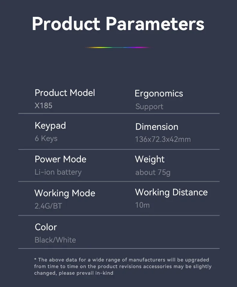 2.4G Black, 2.4G White, 2.4G BT5.2 Black, 2.4G BT5.2 White, Wired Black, Wired White