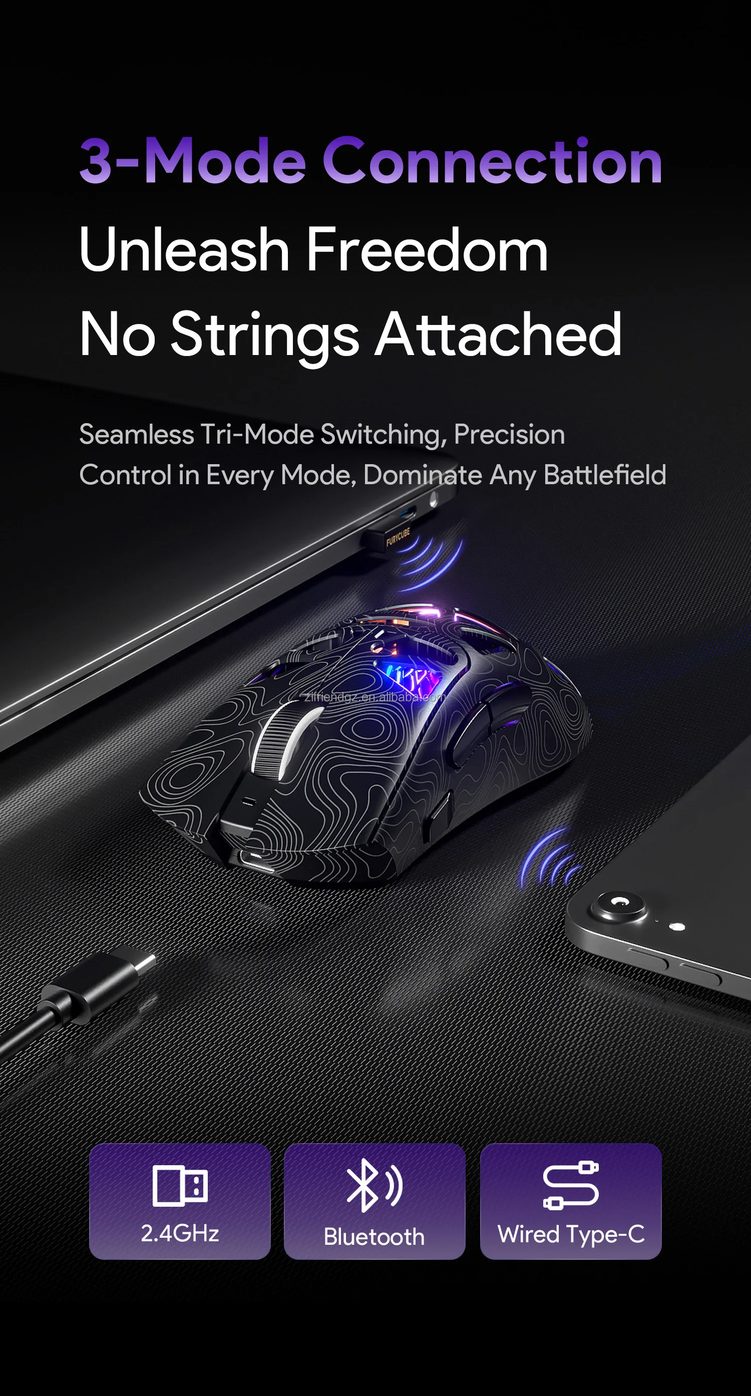 Connection mode: wired/BT/wireless three modes