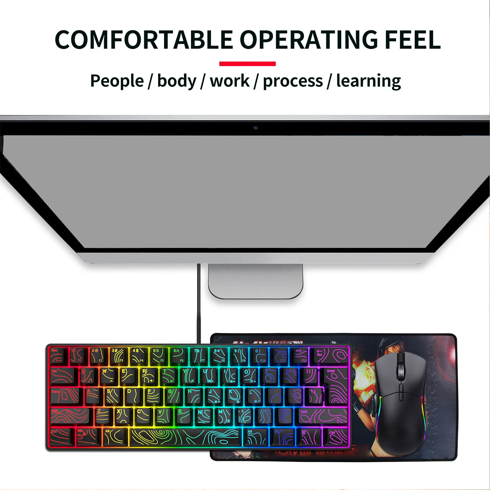 Compact 61-Key Layout – A space-saving 60% design that provides more room for mouse movement.