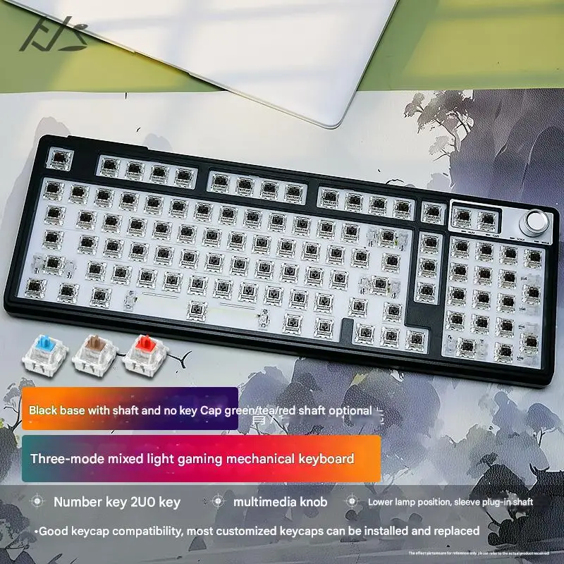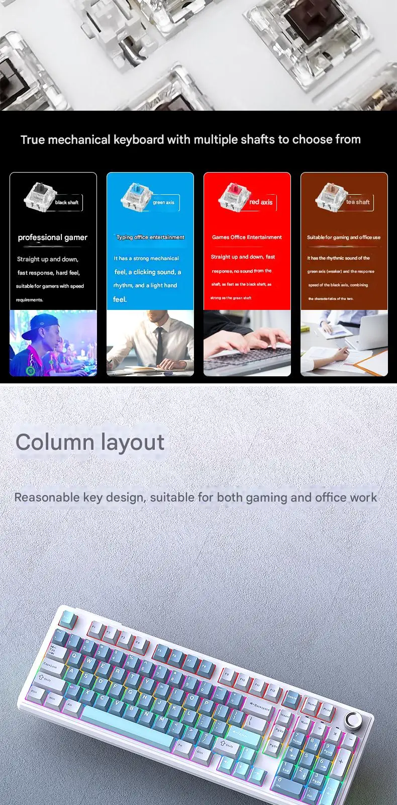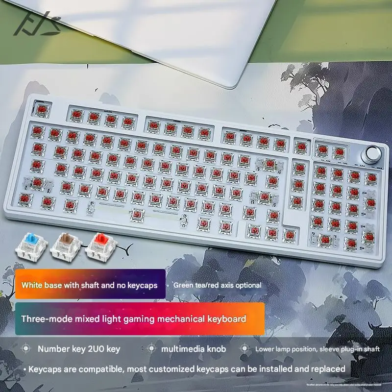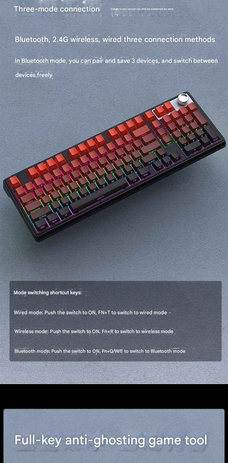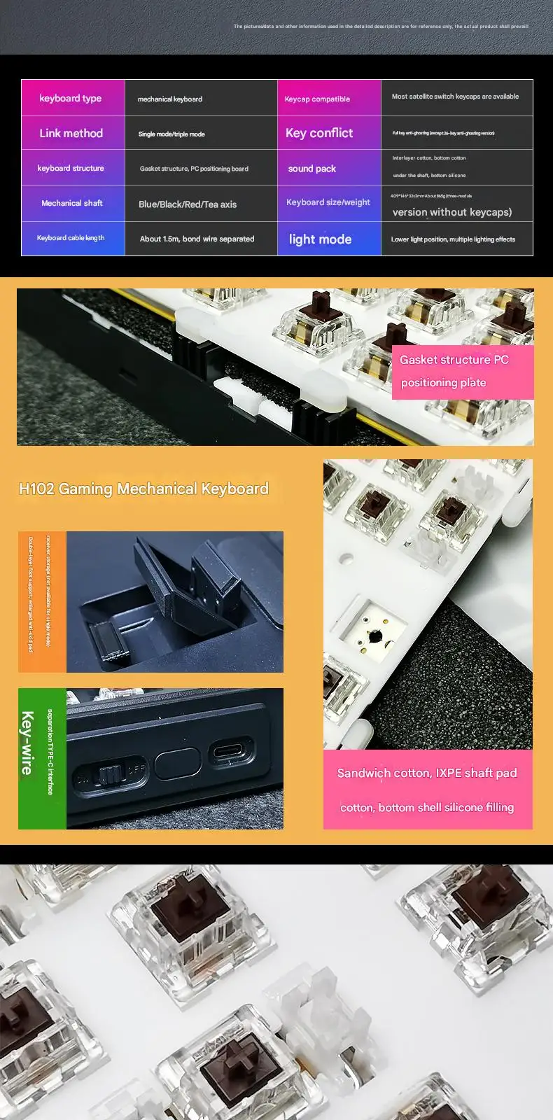 لوحة مفاتيح ميكانيكية Wunng H102 ثلاثية الأوضاع لاسلكية 2.4 جيجاهرتز مزودة بتقنية البلوتوث سلكية بلون الشاي الأسود والأخضر الفاتح،