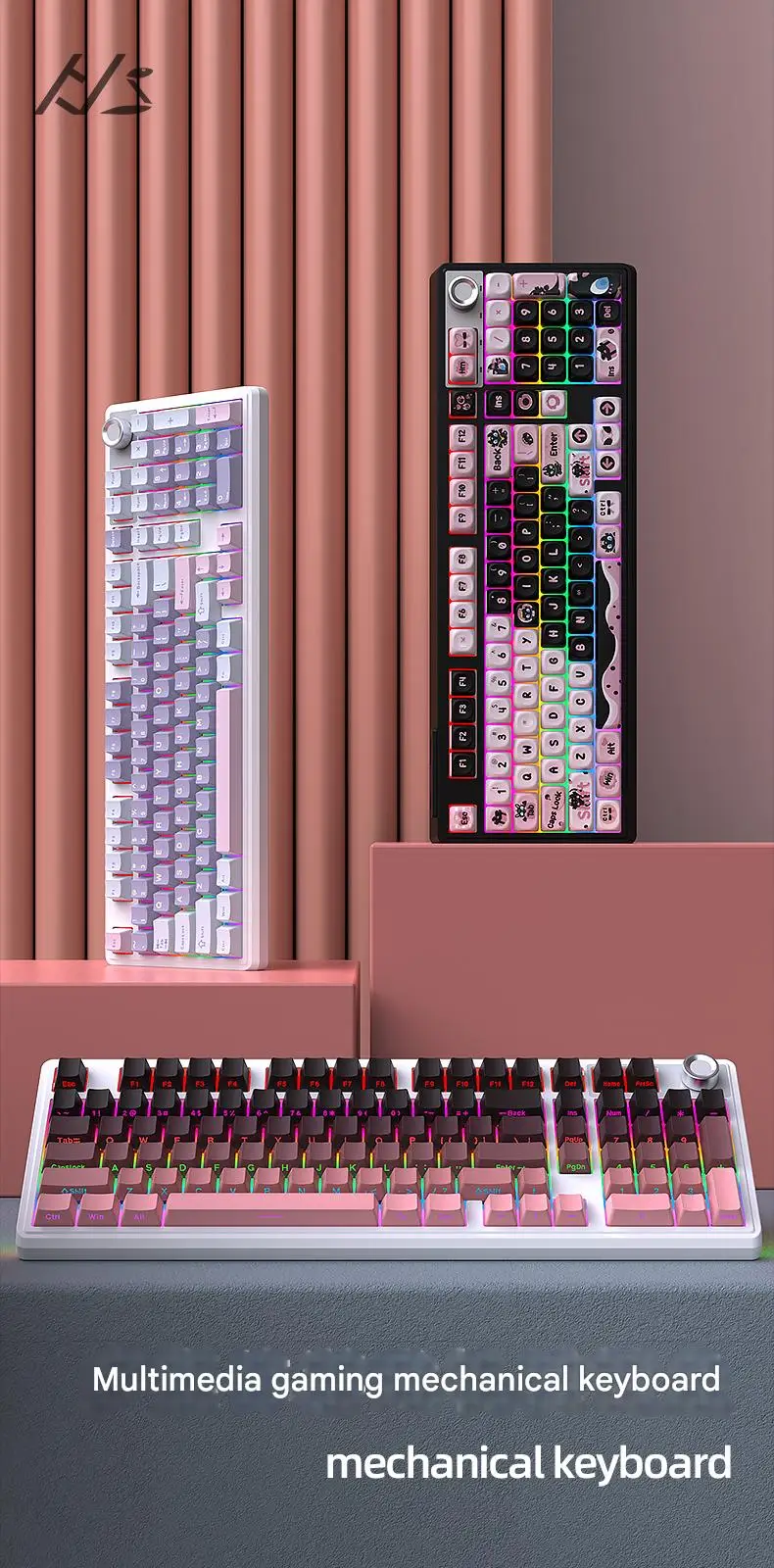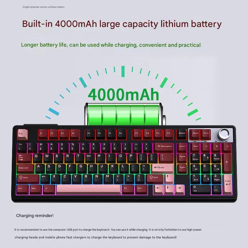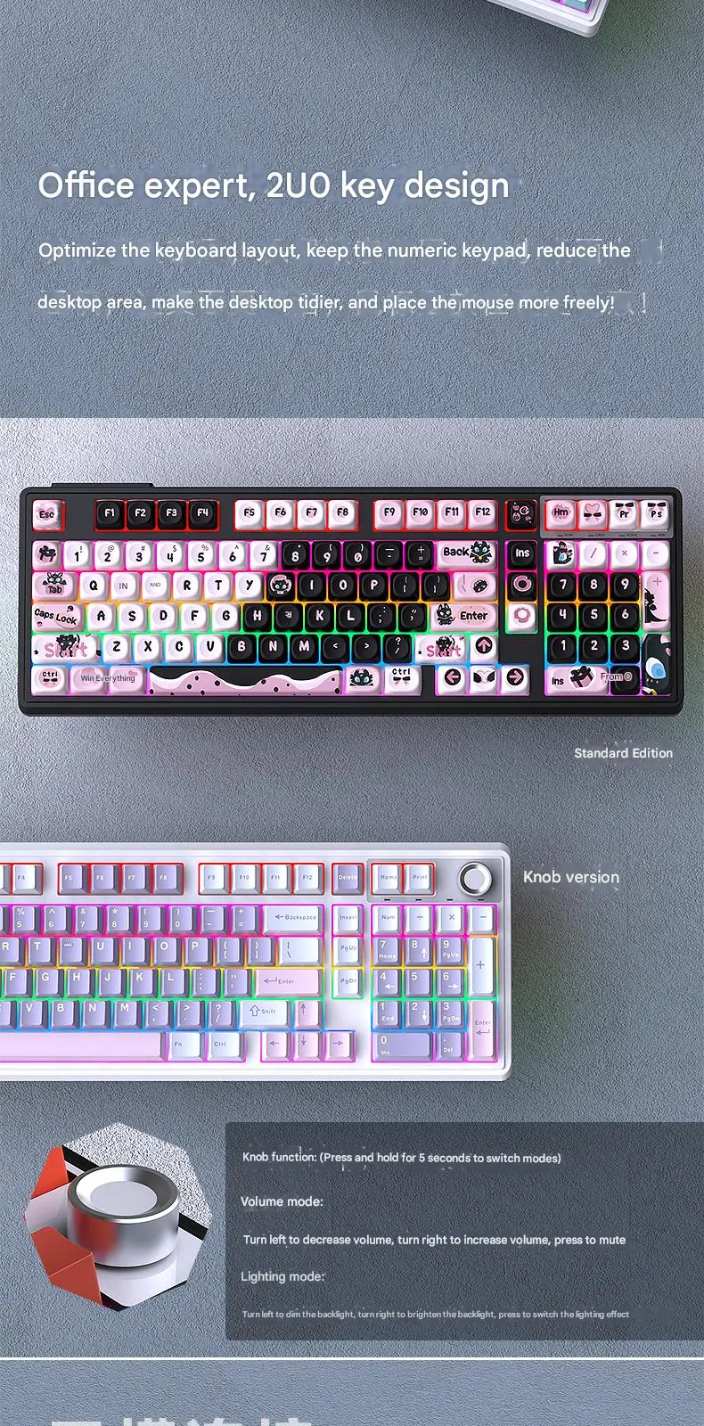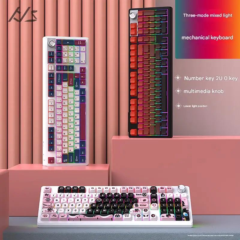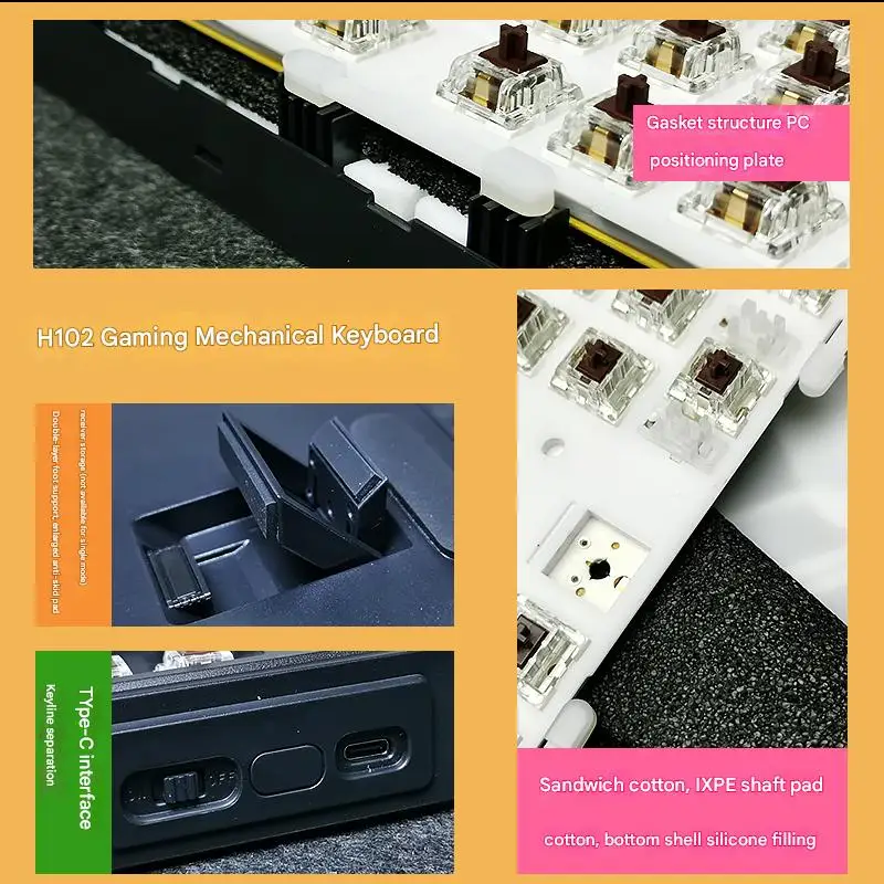لوحة مفاتيح ميكانيكية Wunng H102 ثلاثية الأوضاع لاسلكية 2.4 جيجاهرتز مزودة بتقنية البلوتوث سلكية بلون الشاي الأسود والأخضر الفاتح،