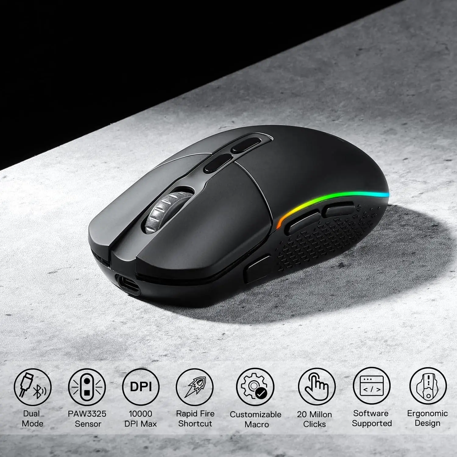 Adjustable DPI up to 11200 – Fine-tune sensitivity for fast reactions and precise control.