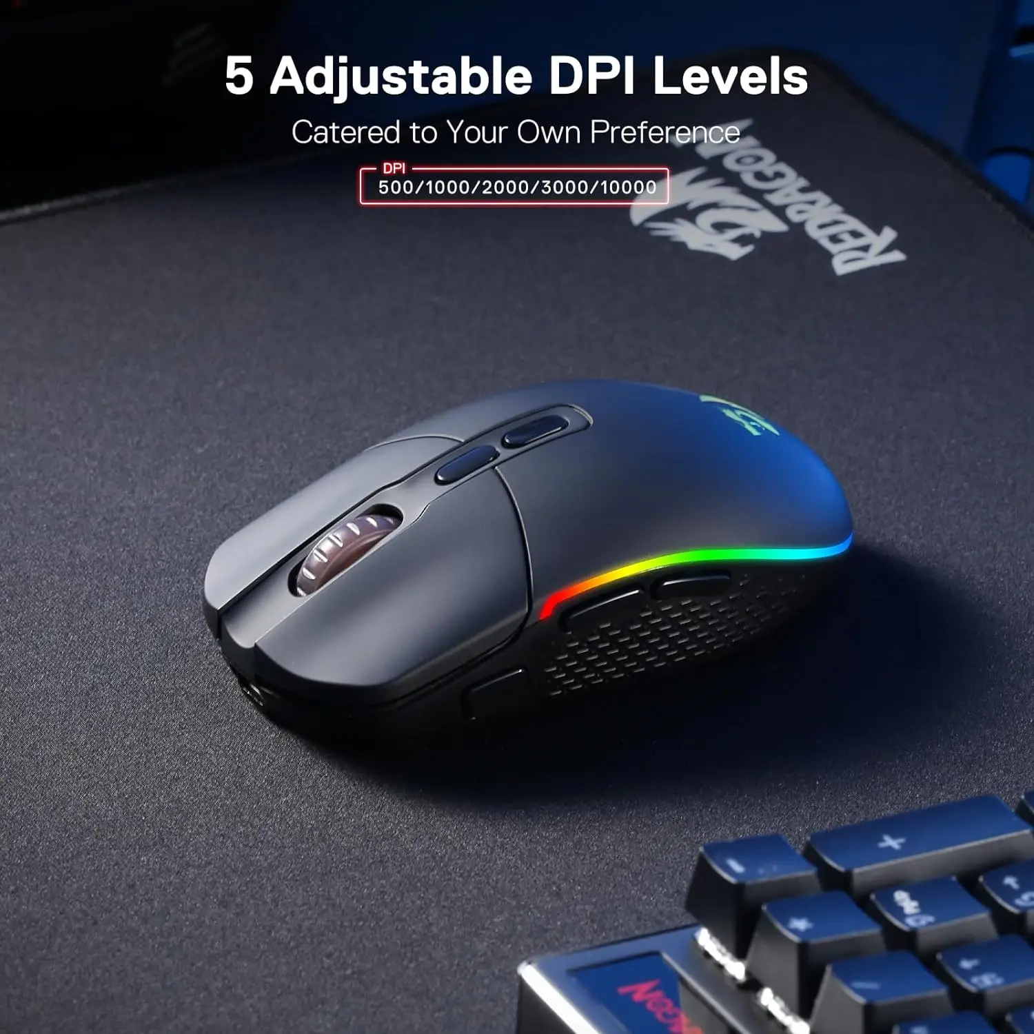 - Custom DPI, polling rate, and RGB settings through software